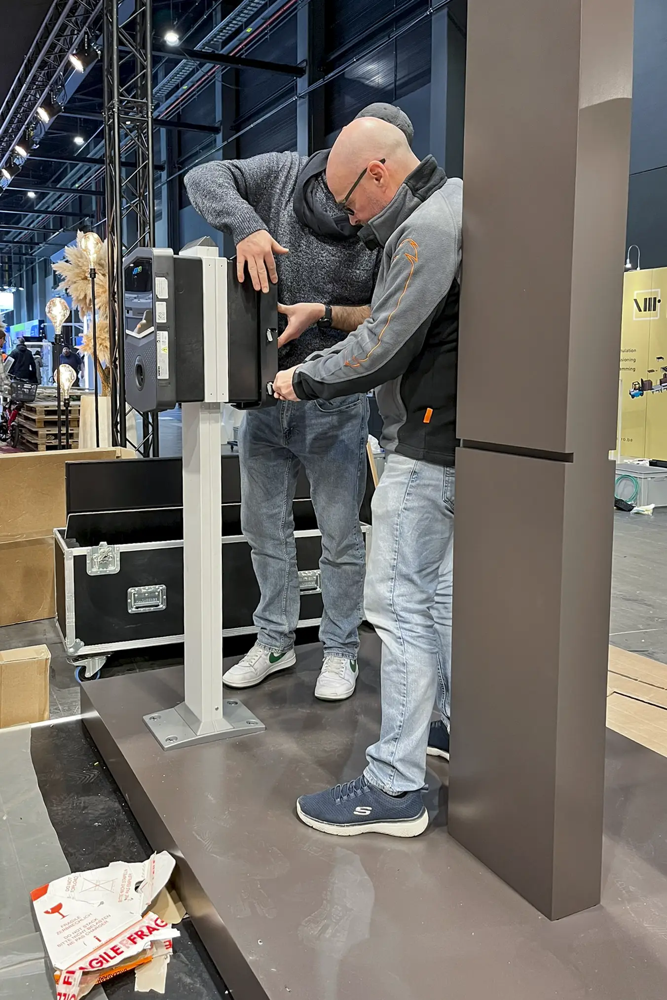 De opbouw in de expo verliep vlot en zonder verrassingen. Het volledige team kon efficiënt doorwerken omdat alle stappen vooraf helder waren vastgelegd. In twee dagen tijd werd de complete stand opgebouwd, van structuur en wanden tot verlichting, visuals en productzones.