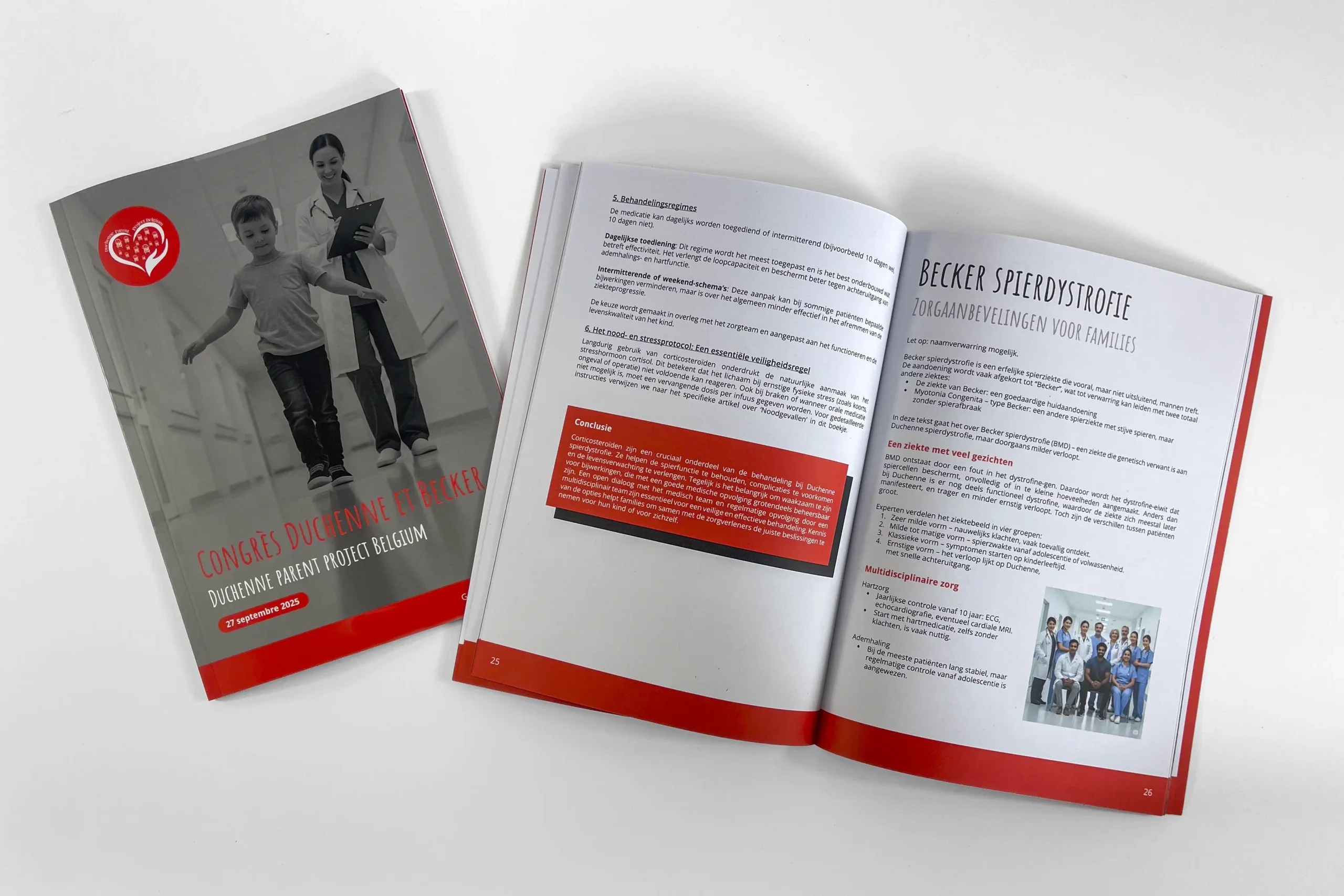 On Saturday 27 September 2025, Duchenne Parent Project Belgium is organising a congress on Duchenne and Becker muscular dystrophy at GC Den Breughel. For the design of the official congress booklet, the organisation called on us. The result is a clear and professionally designed publication, created entirely free of charge as our contribution to the community around Duchenne muscular dystrophy.
