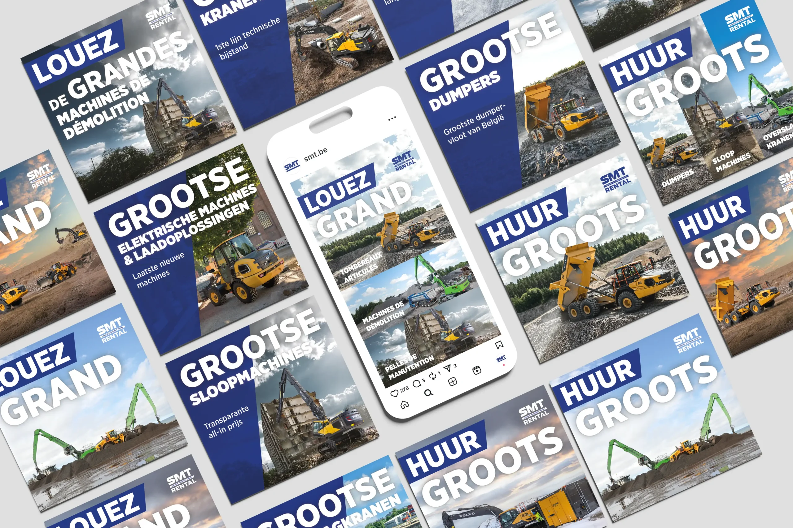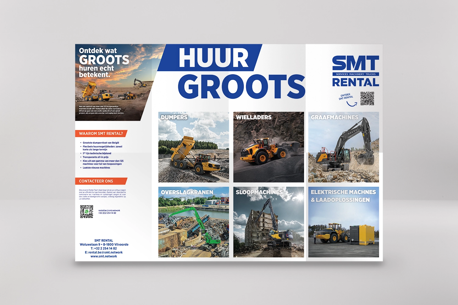 To give clients a clear overview of all benefits and available machines, we designed a rental brochure that aligns seamlessly with SMT’s brand identity.