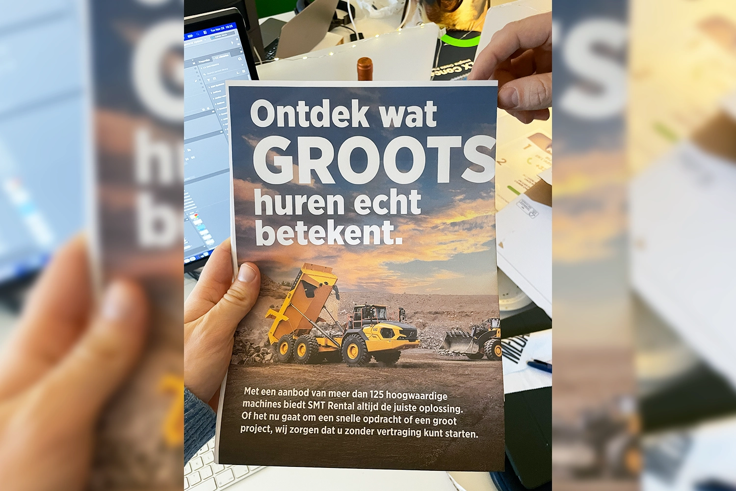 Sometimes you have to go big to stand out. For SMT Rental, we developed a striking A0 Direct Mailing under the motto: “Rent BIG”. This giant mailing immediately grabs attention upon arrival and communicates the strength of the rental offering at a glance, including all machine options and direct contact information. A physical statement that cannot simply be brushed aside.