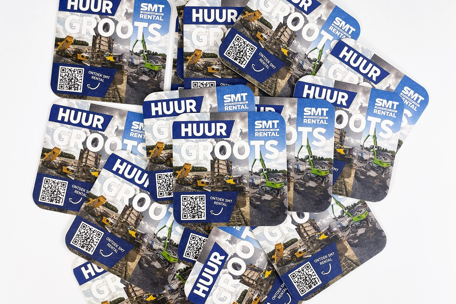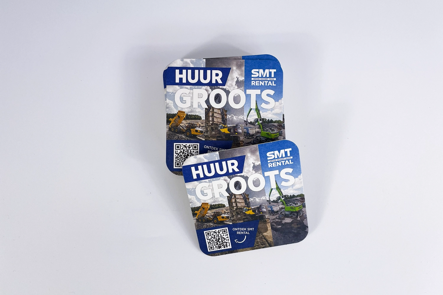 From the construction site to the canteen: branding works everywhere. For SMT Rental, we designed personalized beer coasters. A smart, accessible way to stay top-of-mind during informal moments.