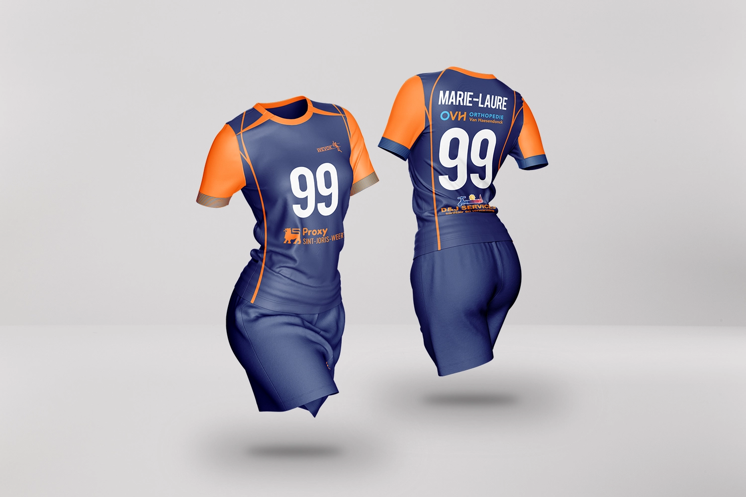 For Wevok Volleyball from Sint Joris Weert we created sportswear that strengthens the team’s identity. We gave all sponsors a clear and well considered place in the design so that each shirt forms a strong and balanced whole.